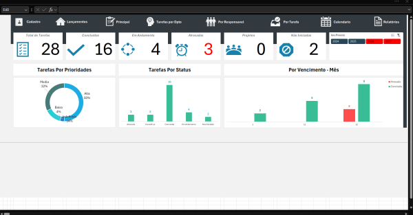Nosso Dashboard de Controle de Tarefas é a ferramenta ideal para otimizar a gestão de suas tarefas . Com uma interface intuitiva ele transforma a maneira como você gerencia suas atividades diárias.
