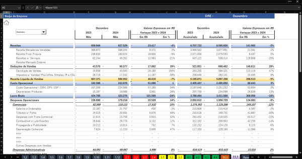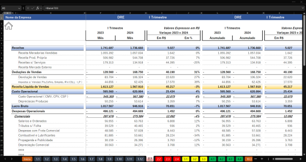 - Análises Mensais Detalhadas: Tenha acesso a análises mensais do DRE dos últimos anos, permitindo uma visão completa e precisa do desempenho financeiro ao longo do tempo.