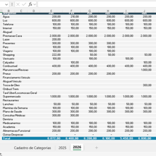 Versatilidade para anos futuros: Basta fazer uma cópia da guia do ano corrente e usar a mesma estrutura para gerenciar seus gastos nos anos seguintes, mantendo um histórico completo e organizado.Transforme a gestão financeira da sua família com uma ferramenta prática, visual e eficiente. Comece agora e veja a diferença que o controle dos seus gastos pode fazer na sua vida!