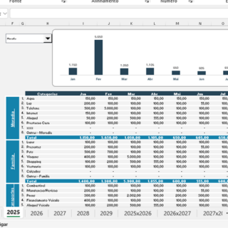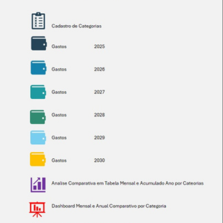 Estrutura montada para 5 anos: Planeje e acompanhe suas finanças a longo prazo.